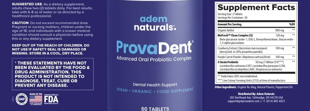 Yes! Provadent is made with natural ingredients, clinical probiotics, and plant extracts. It is free from stimulants, GMOs, gluten, and harsh chemicals. It’s manufactured in the USA, in FDA-registered and GMP-certified facilities, following the highest quality standards.